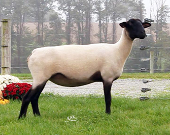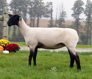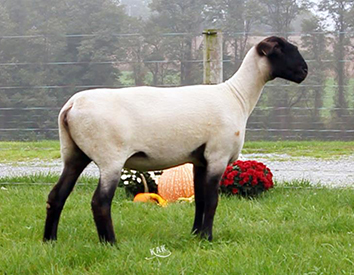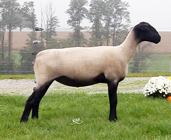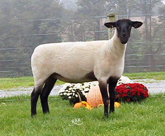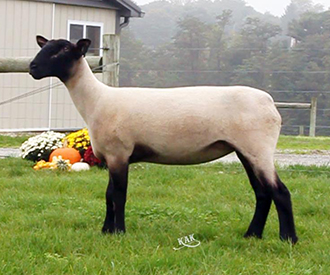 3966 is a McLaughlin/Griffin 15-44 daughter out of a Kimm BarZel ewe purchased at the Kimm sale in 2015. Whatever we have bred her to has worked. McLaughlin/Griffin 15-44 was the Champion Slick Ram at NAILE in 2015. There is more purple coming with the offspring's pedigree - we bred 3966 to 4120, our lead fall ram this year. He has been the Champion Ram at Ohio, Indiana and KILE and Reserve Slick Ram at Big E.